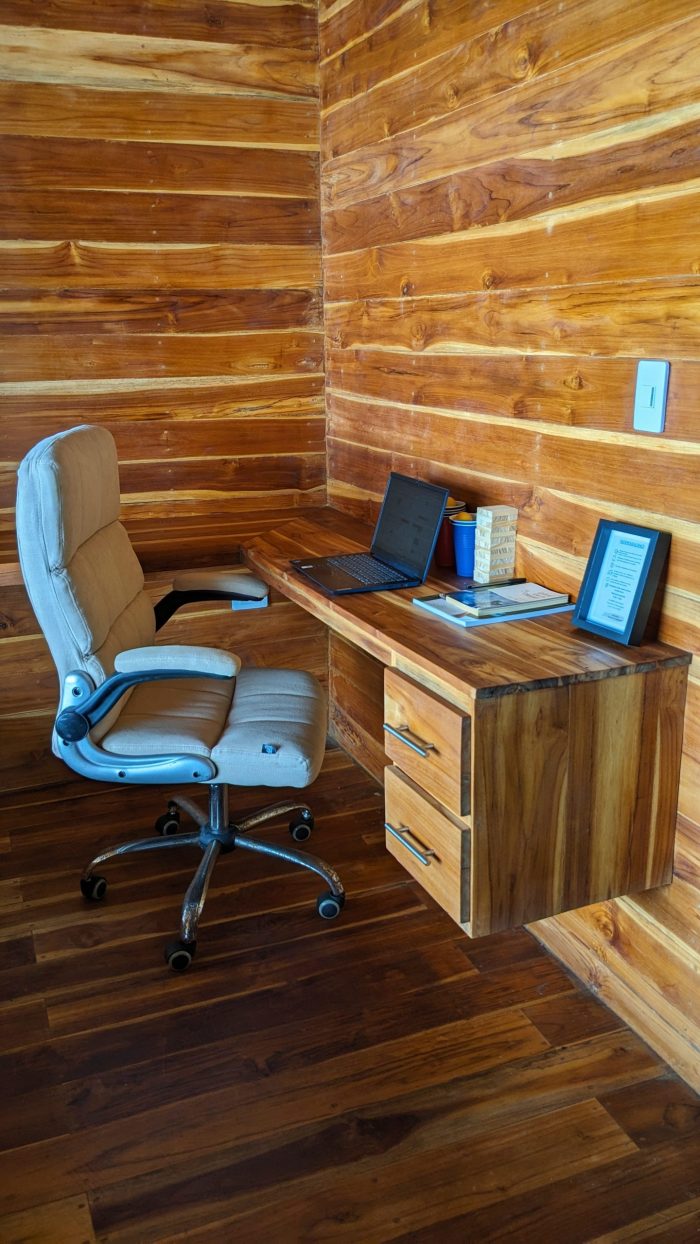 Habitación doble deluxe privada con vistas a la montaña, baño privado, balcón, muebles en el exterior, ropa de cama, utensilios de aseo, ducha por fuera del baño, cafetera, caja de vinos, aire acondicionado, terraza privada, visitas al mar, armario extra grande, plancha de ropa, ventilador, zona de trabajo, silla oficina y mueble de oficina, estudio.