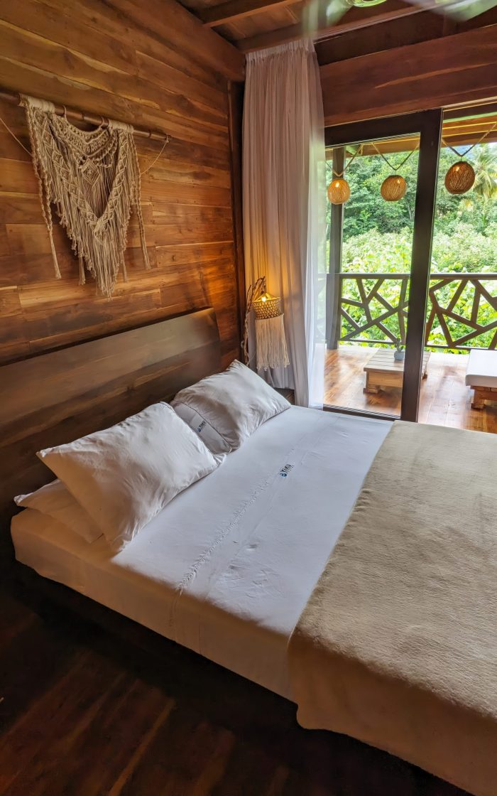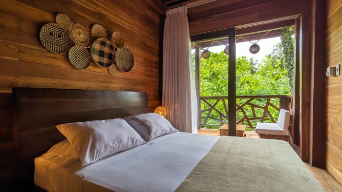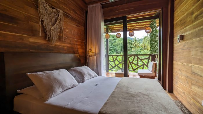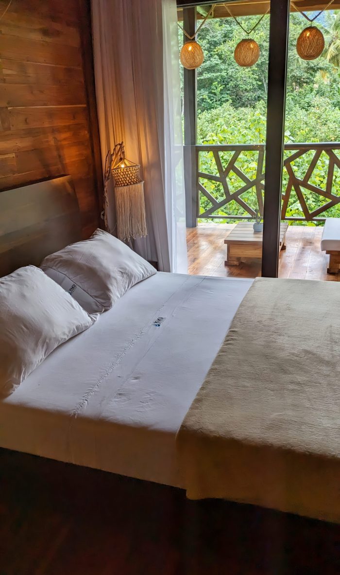 Habitación doble deluxe privada, baño privado, balcón, ropa de cama, utensilios de aseo.